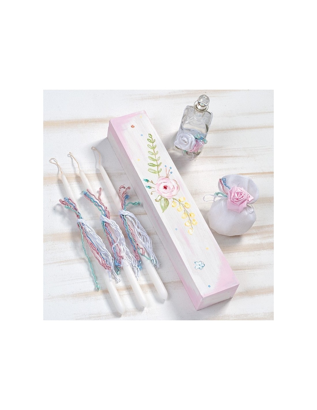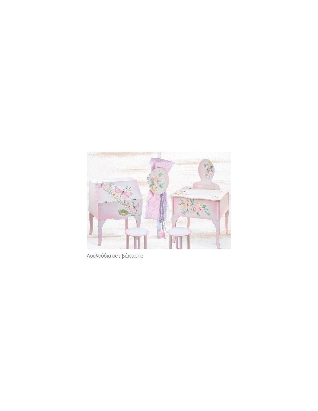 Σετ Βάπτισης Παρίσης Λουλούδια Με Κουτί Βάπτισης - Σεκρετέρ